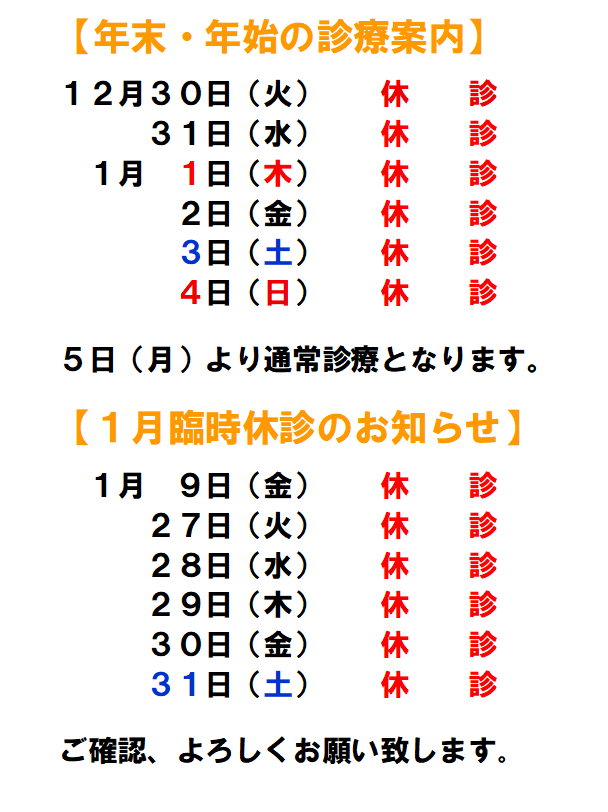 診療日時変更のお知らせ